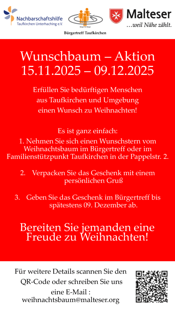 In den Weihnachtsferien vom 22. Dez. 25 bis 6. Jan. 26 ist der Bürgertreff im Wesentlichen geschlossen.